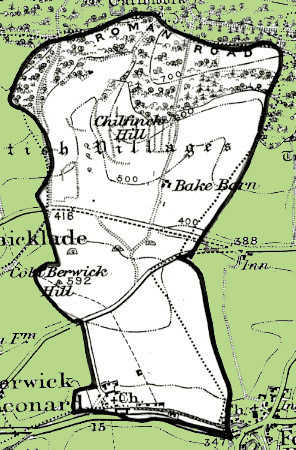From the Ordnance Survey 1890s revision of the one inch to one mile map. The modern civil parish boundary has been superimposed.