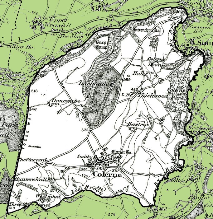 From the Ordnance Survey 1890s revision of the one inch to one mile map. The modern civil parish boundary has been superimposed.