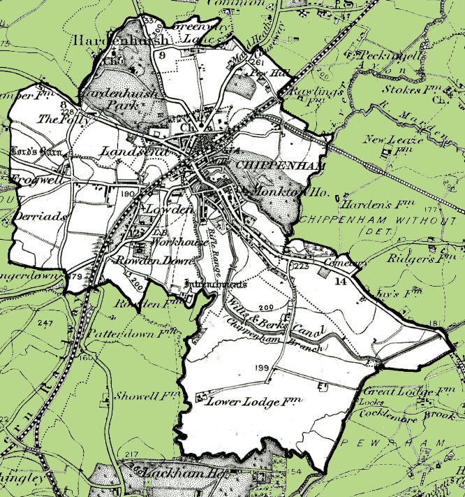 From the Ordnance Survey 1890s revision of the one inch to one mile map. The modern civil parish boundary has been superimposed.
