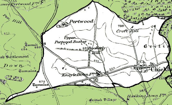 From the Ordnance Survey 1890s revision of the one inch to one mile map. The modern civil parish boundary has been superimposed.