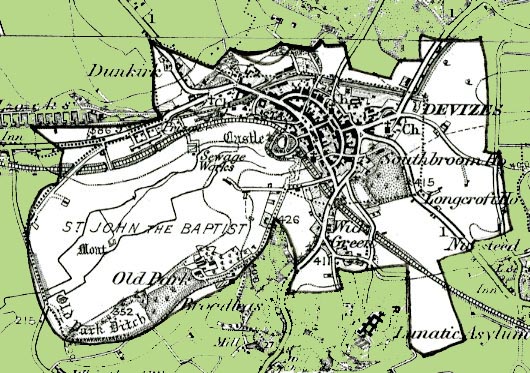 From the Ordnance Survey 1890s revision of the one inch to one mile map. The modern civil parish boundary has been superimposed.