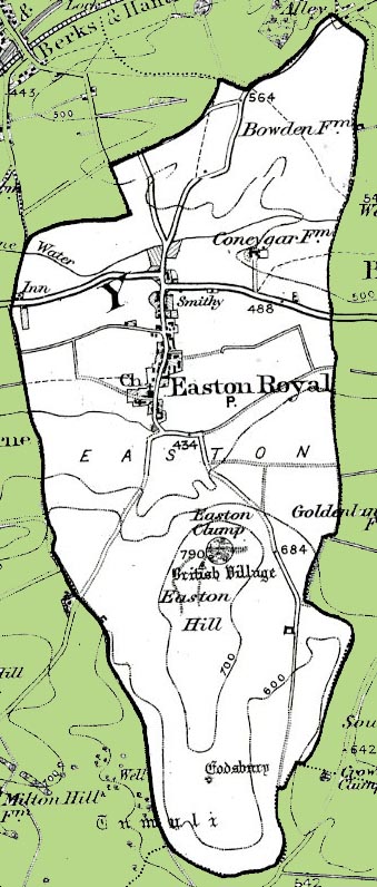 From the Ordnance Survey 1890s revision of the one inch to one mile map. The modern civil parish boundary has been superimposed.