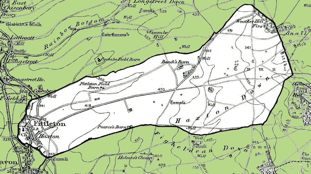 From the Ordnance Survey 1890s revision of the one inch to one mile map. The modern civil parish boundary has been superimposed.