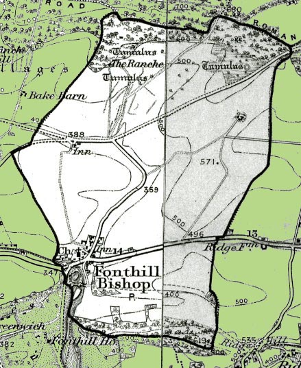 From the Ordnance Survey 1890s revision of the one inch to one mile map. The modern civil parish boundary has been superimposed.
