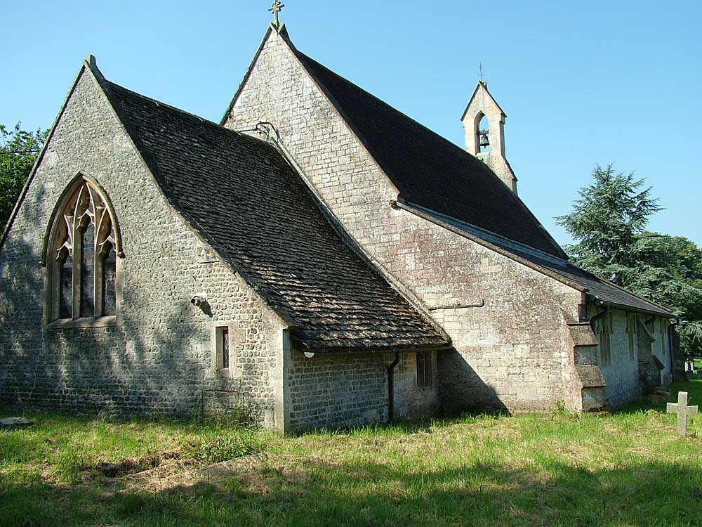 The present church was built in 1850 by William Butterfield from snecked squared limestone, although the nave with its tiled roof was added by T. H. Wyatt in 1861-2. The chancel has a stone slate roof as well as a lean-to vestry and organ recess. The gabled porch is south-facing with quatrefoiled lights at the side, while the bellcote is positioned over the west gable, carried on a series of offsets on the wall. Previously there was no bellcote, only a wooden tower. There are two distinct window types; two, three and four square headed windows to the nave, and a two light west window with a roundel above, as well as a three light east window with slender tracery.