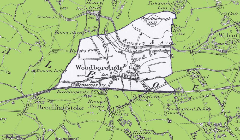 From the Ordnance Survey 1890s revision of the one inch to one mile map. The modern civil parish boundary has been superimposed.