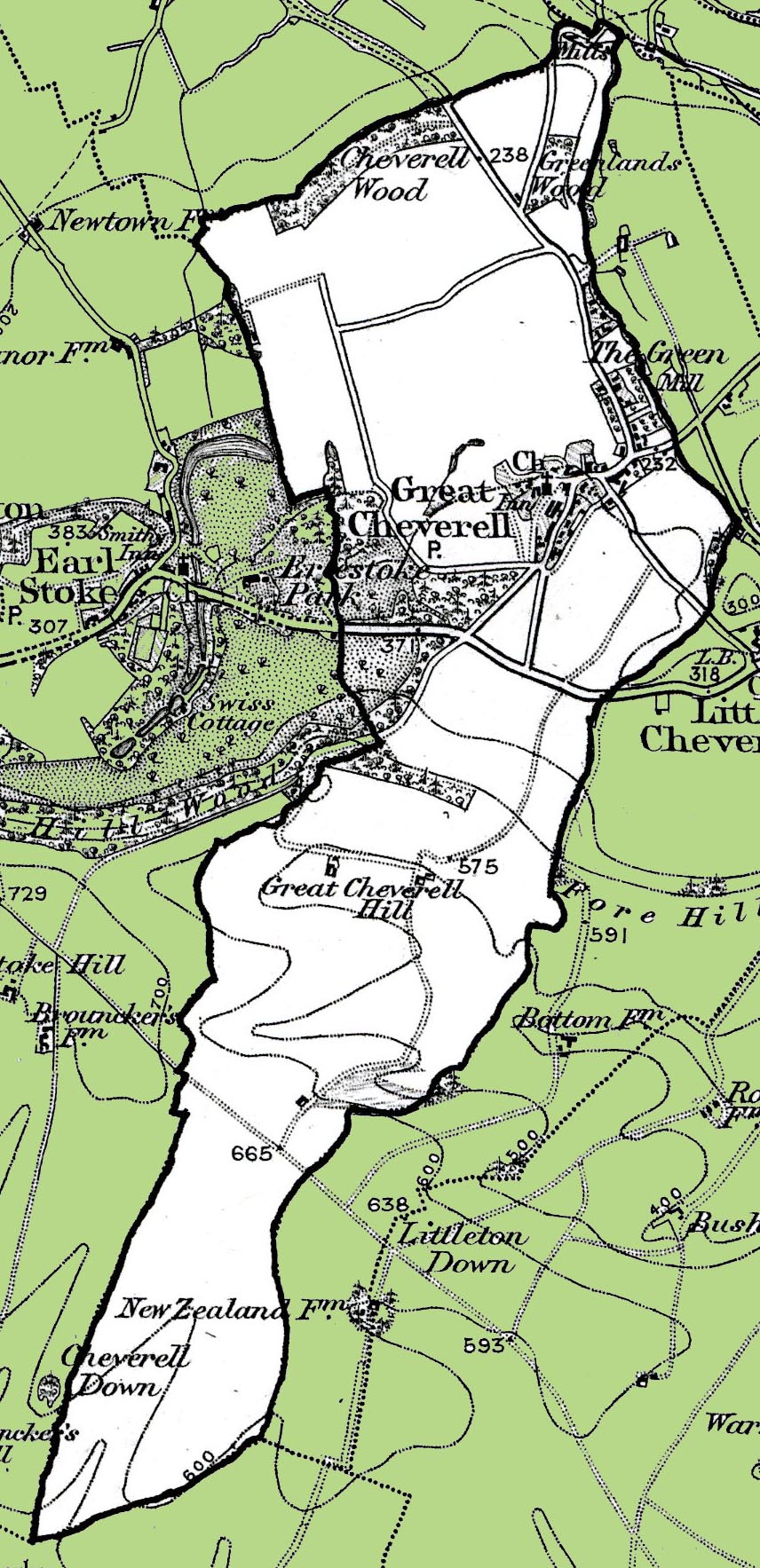 From the Ordnance Survey 1890s revision of the one inch to one mile map. The modern civil parish boundary has been superimposed.