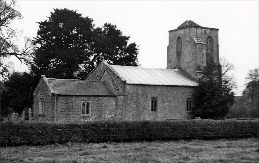 The Church of All Saints is built of freestone, rubble and red brick, having a chancel, nave and west tower. The original church was 12th century and the chancel arch survives from this church. In the 14th century the nave was rebuilt and widened towards the south. In the late 15th or early 16th century the tower was added, while around the same time the chancel was reconstructed and a rood stair put in the north wall of the nave, Both nave and chancel roofs were renewed in the later 18th century; the chancel walls were refaced with brick in the early 19th century and the nave walls restored later in that century. Further restoration of the building took place in c.1960 and c.1976.