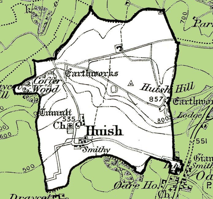 From the Ordnance Survey 1890s revision of the one inch to one mile map. The modern civil parish boundary has been superimposed.