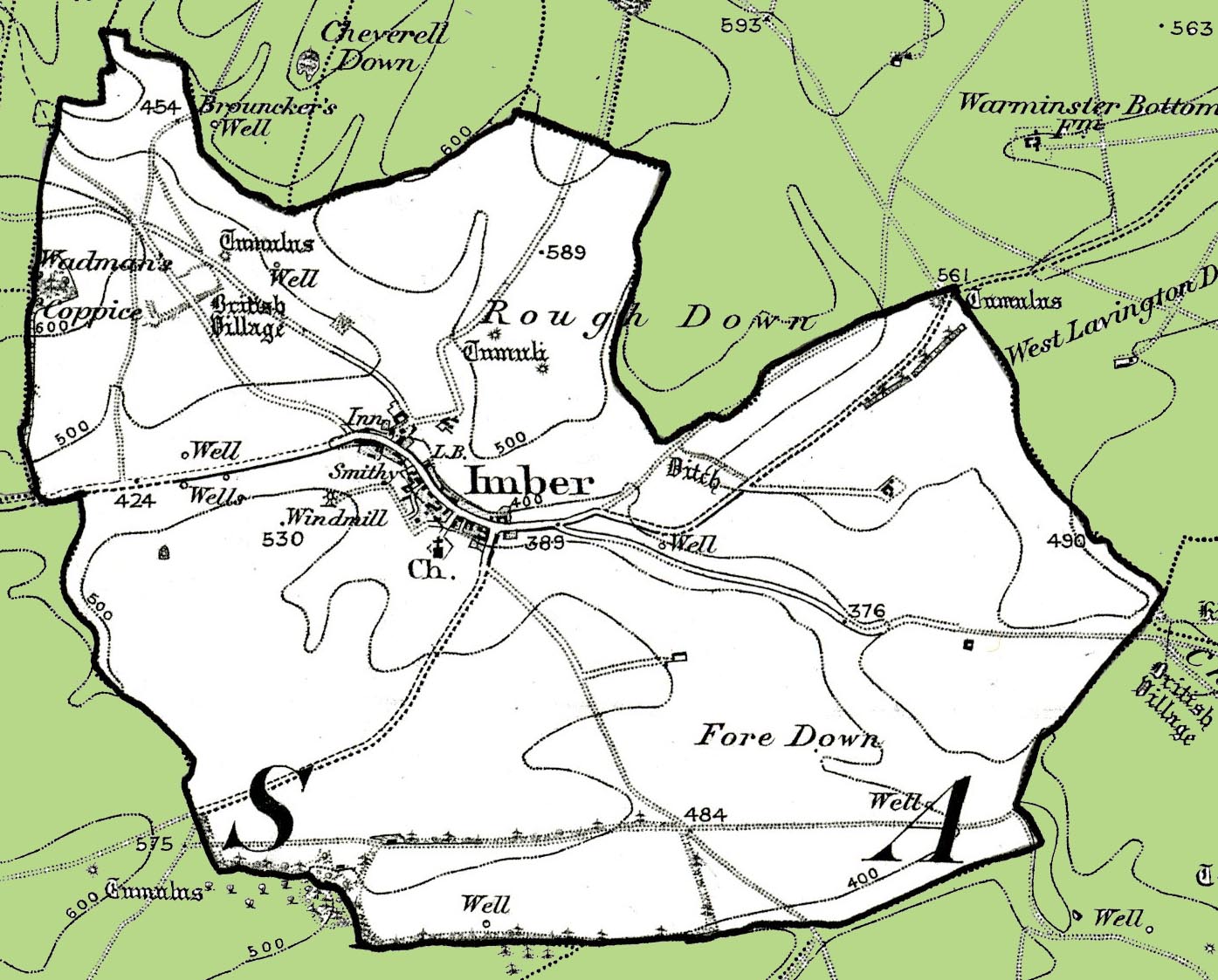 From the Ordnance Survey 1890s revision of the one inch to one mile map. Imber is now part of the civil parish of Heytesbury, Imber and Knook.