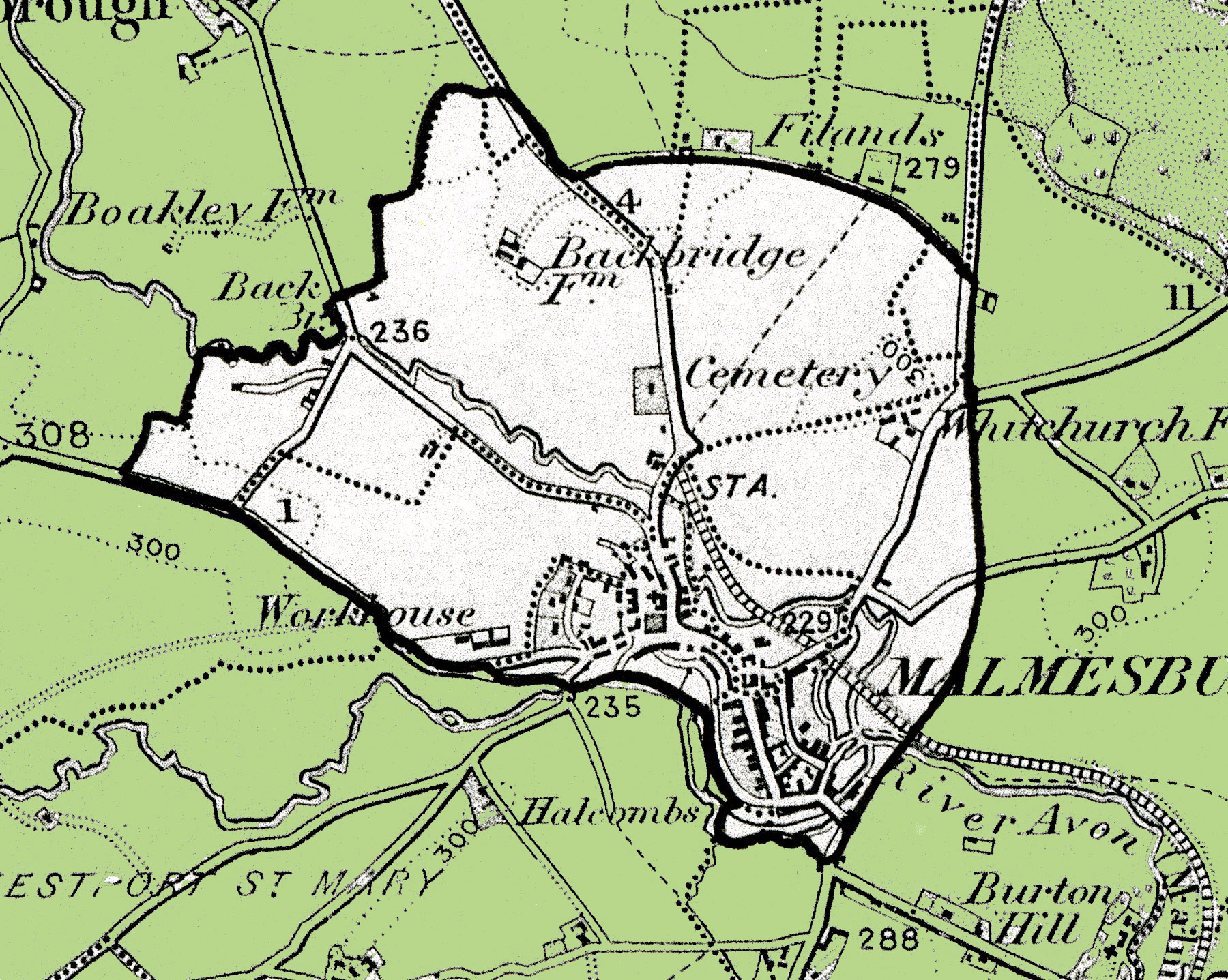 From the Ordnance Survey 1890s revision of the one inch to one mile map. The modern civil parish boundary has been superimposed.