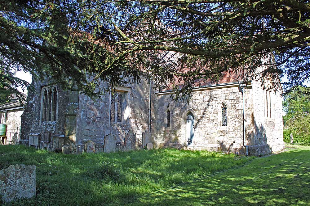 The present church of Holy Trinity dates largely from the 15th century and was partially rebuilt in 1865. The church is built of ashlar and has a chancel and a nave with transeptal chapels, a south aisle and a north porch beneath a tower with a pyramidal roof. The font dates from the 12th century. The oldest parts of the building, namely the transept arches and part of the nave’s north wall, including the doorway, survive from a cruciform church without aisles that was built c.1300.