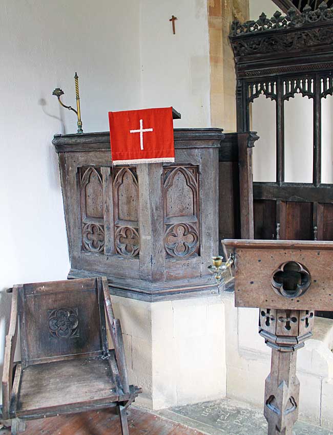 19th Century Pulpit with 15th Century Chancel Screen in Background.