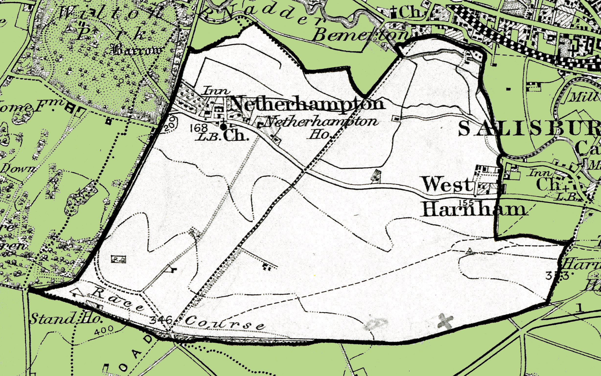 From the Ordnance Survey 1890s revision of the one inch to one mile map. The modern civil parish boundary has been superimposed.