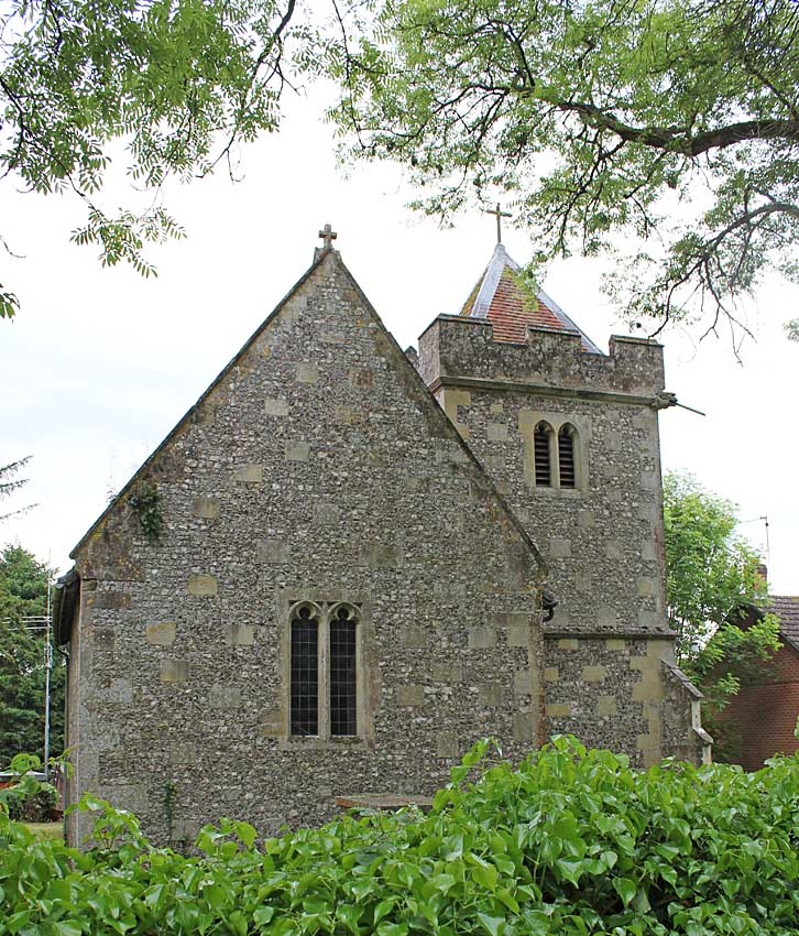 The original chancel dates from the 12th century, was rebuilt in the 13th century, had a tower added in the 14th century and an enlargement made to the east and south window in the 15th century. There was an early painting of St. Christopher on the north nave wall. The church was rebuilt between 1848 and 1852 and then dedicated to St. John the Baptist; parts of the old building were incorporated into the new, the 12th century chancel arch, for example. The ‘new’ church building included a nave with south porch, chancel, and a low tower with weatherboarding on the upper section.
