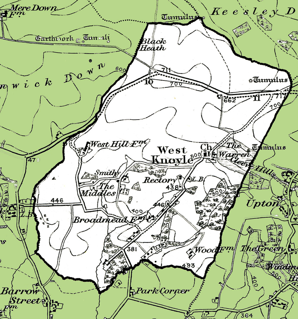 From the Ordnance Survey 1890s revision of the one inch to one mile map. The modern civil parish boundary has been superimposed.