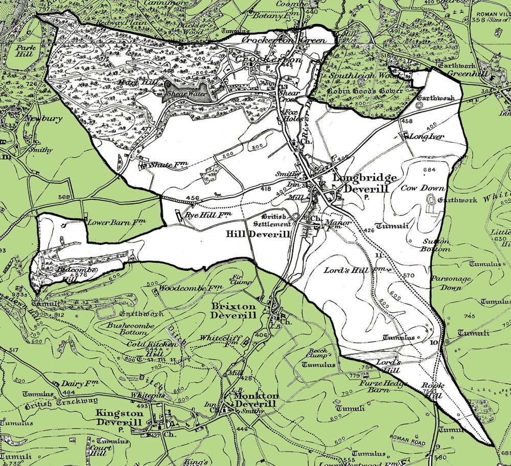 From the Ordnance Survey 1890s revision of the one inch to one mile map. The modern civil parish boundary has been superimposed.