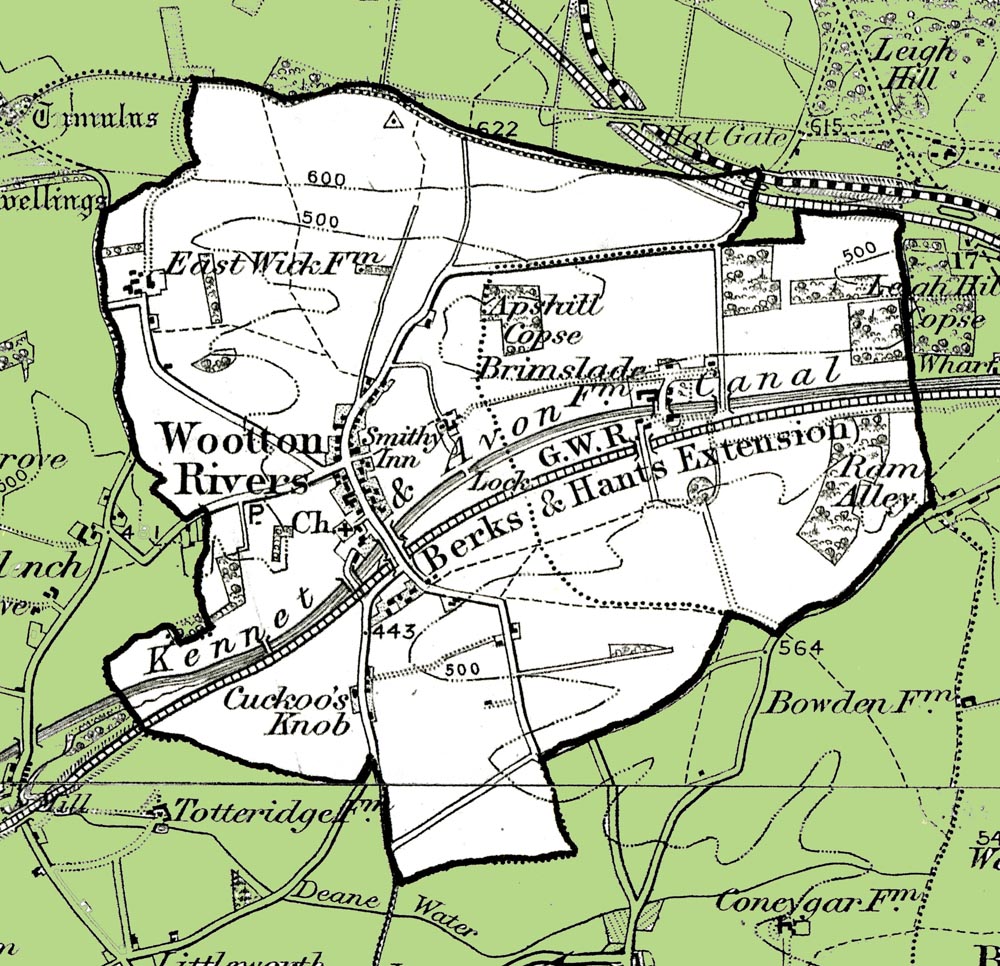 From the Ordnance Survey 1890s revision of the one inch to one mile map. The modern civil parish boundary has been superimposed.