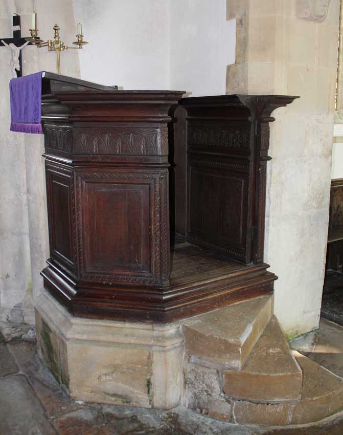 During the 17th century the chancel roof was lowered and this cut off the tops of the side windows. Further indications of alterations at this time are the south doorway with the initials G A and the date 1611, also a beam that was discovered in the chancel roof with the date 1610. Most of the fittings in the nave, including the pews, pulpit and font cover, also date from the 17th century.