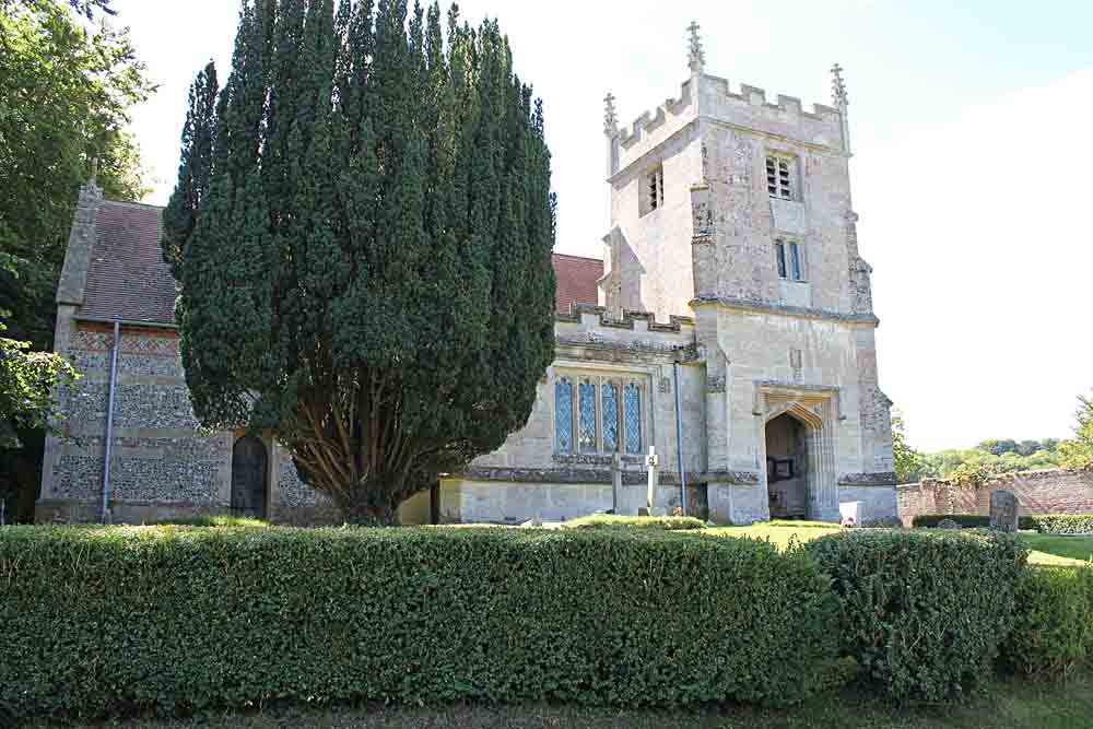 The nave and chancel, whose dimensions are a further indication of an earlier building on the site, date principally from the church’s restoration in 1858 by John Loughborough Pearson. Memorial tablets and brasses are dedicated to members of the Pinckney and Fowle families.