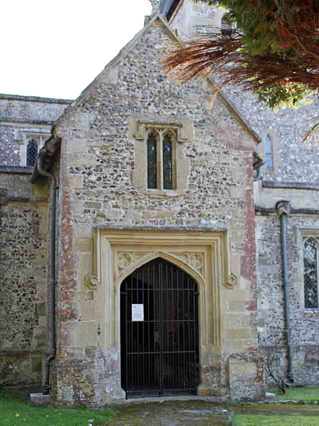 All Saints is the most beautiful of the Bourne Valley churches and is an excellent example of the Decorated style that is rare in Wiltshire. Idmiston had a tradition of remarkable stone carving and there are many good gargoyles on this flint and limestone church. The church seems to have its origins in the 12th century and the earliest part is the lower section of the tower, which is Norman. The present plain chancel was built in the early 13th century and has a piscina in the south wall of the sanctuary. In the late 13th or early 14th century the nave was rebuilt, as was the east arch of the tower. There are 37 stone corbels with well carved faces, showing many expressions, and believed to be based on contemporary villagers. An interesting selection of clothes and headwear is also depicted. There are also carved faces on the roof timbers but these are in a poorer state of preservation. The porch and priest';s room, and the two aisles are 14th century; the arcades of the latter are beautiful examples of Decorated work. Also from this century is the font, in Purbeck marble; it is octagonal and on a stem and base.