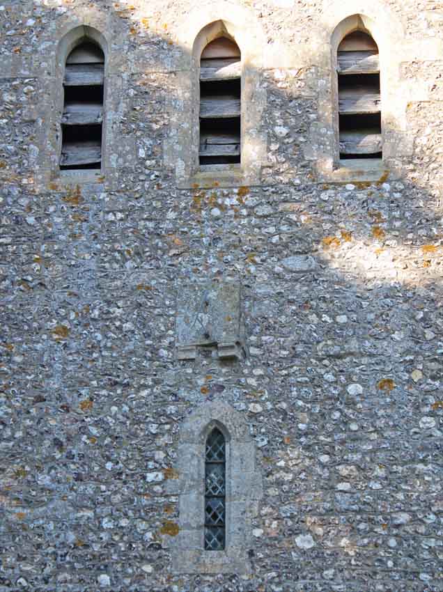 All Saints is the most beautiful of the Bourne Valley churches and is an excellent example of the Decorated style that is rare in Wiltshire. Idmiston had a tradition of remarkable stone carving and there are many good gargoyles on this flint and limestone church. The church seems to have its origins in the 12th century and the earliest part is the lower section of the tower, which is Norman. The present plain chancel was built in the early 13th century and has a piscina in the south wall of the sanctuary. In the late 13th or early 14th century the nave was rebuilt, as was the east arch of the tower. There are 37 stone corbels with well carved faces, showing many expressions, and believed to be based on contemporary villagers. An interesting selection of clothes and headwear is also depicted. There are also carved faces on the roof timbers but these are in a poorer state of preservation. The porch and priest';s room, and the two aisles are 14th century; the arcades of the latter are beautiful examples of Decorated work. Also from this century is the font, in Purbeck marble; it is octagonal and on a stem and base.