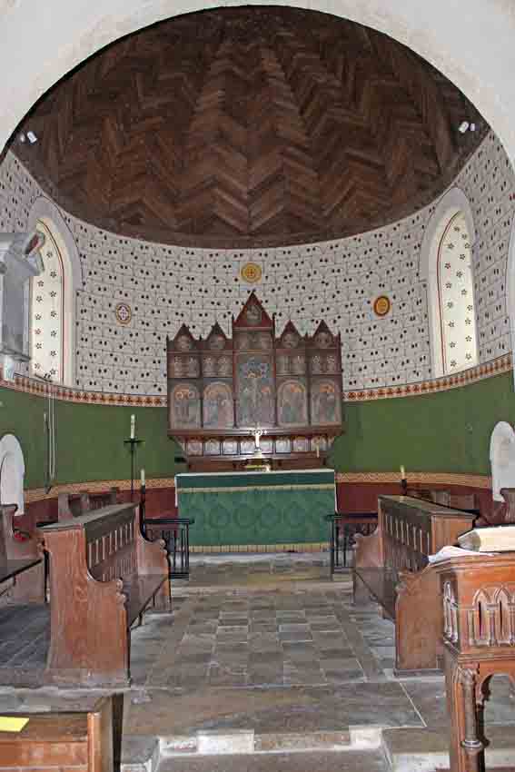 Chancel with 19th century barrel vault and semi-dome over apse.