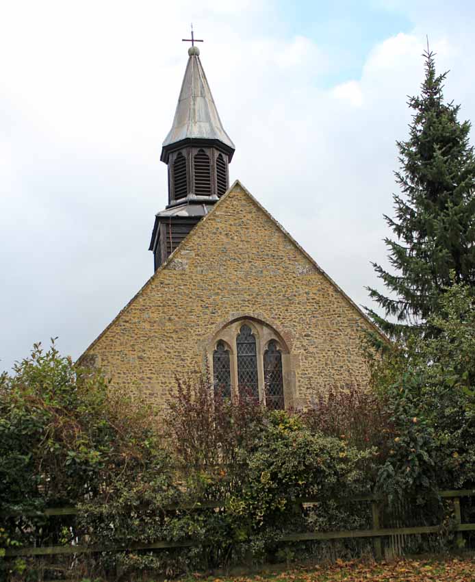The church building is located west of the village and is built of rubble stone with freestone dressings; it consists of a chancel, nave, north vestry, south porch and bellcot. The late 13th century church had windows with grouped cusped lancets. The building was partly rebuilt from 1876 to 1878, and restored to the original by Henry Weaver of Devizes. The west gallery was removed, the north vestry was added and the interior was refitted. The 12th century font with Jacobean carved bower at the base was retained, as was the 14th century piscina. The 17th century pulpit was moved from the south east to the north east corner. The chancel arch was taken down and a new one erected and an ancient stone coffin with no lids or remains was discovered on the north side of the altar. A licence was awarded to perform divine service in the schoolroom while this restoration was undertaken. The final cost of the restoration was £1,240 and the church was re-opened in February 1878.
