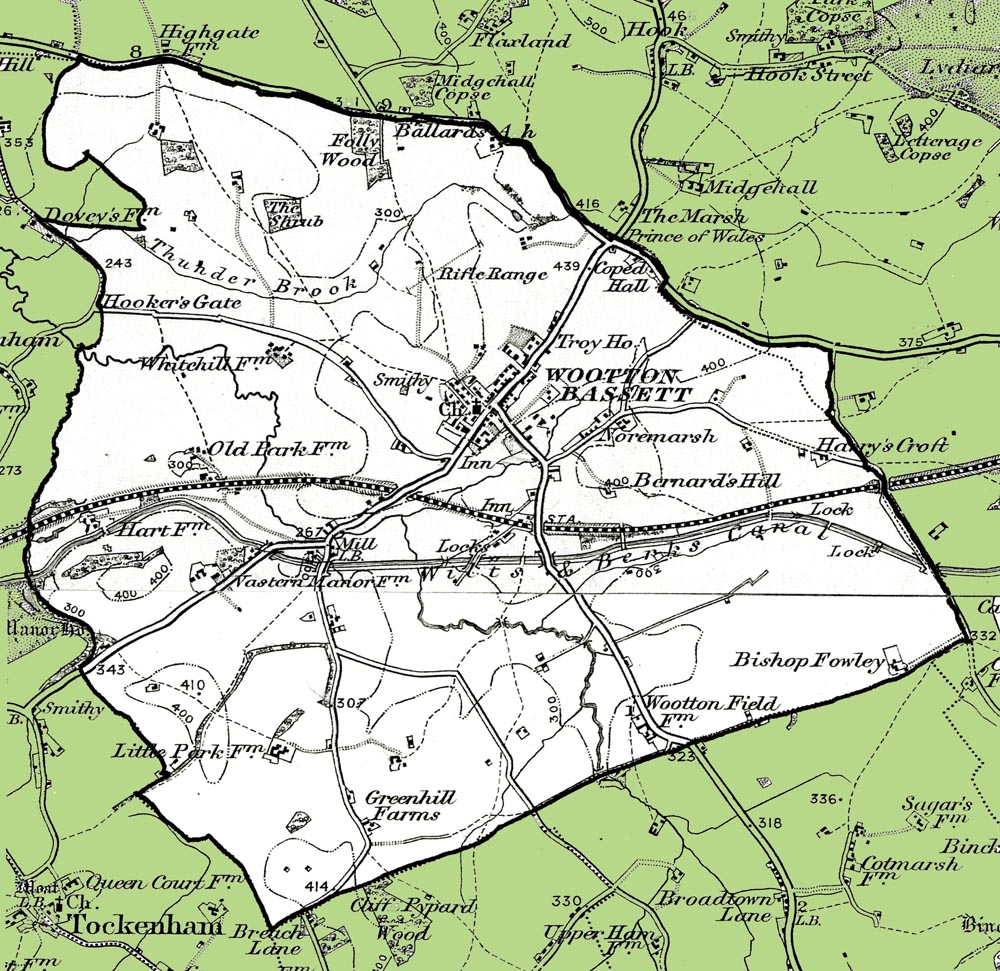 From the Ordnance Survey 1890s revision of the one inch to one mile map. The modern civil parish boundary has been superimposed.
