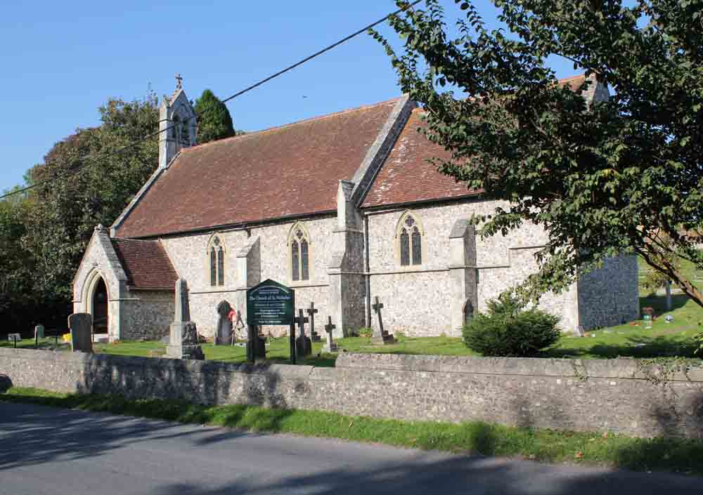This was originally a privately endowed chantry chapel set up by Lucia Burgelen at Birdlimes Farm. By 1545 it had become a chapel of Idmiston church and was served by a curate. The chapel continued to serve the community of Porton and was doubtless enlarged over the centuries. In 1848 it was described as a small ancient structure with a nave, chancel and a porch on the south side. It had a wooden belfry. Unfortunately the fabric of the church had deteriorated and in 1876-7 a new Church of St. Nicholas was built on a new site, with the Rev. William Dowding, Joseph Waters and Henry Targett providing most of the finance and I.A. Ingram giving the land. This church of flint, with brick dressings and a tiled roof, was designed by J.L. Pearson and has a nave, chancel, vestry, south porch and a bell cote. It was consecrated on 18th July 1877. Unfortunately the builder did not follow the architect';s specifications and the church needed underpinning later. There is a reset 15th century font and the registers dating from 1813, other than those in current use, are held in the Wiltshire and Swindon History Centre.