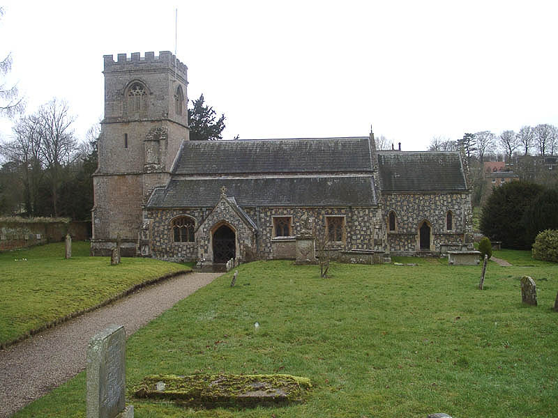 There was a Saxon church here serving the now vanished settlement of Preshute. A Norman church was known to have existed in the 12th century and the dedication to St. George is first mentioned in 1232. In the 12th century the church had a chancel, nave with south aisle and a west tower. In the 14th century the south aisle and chancel were rebuilt while the tower was rebuilt in the 15th century. In 1726 the Earl of Hertford built a west gallery as a family pew, which from 1783 was reserved for guests staying at the Castle Inn. In 1854 the church, except for the tower was rebuilt to the designs of T.H. Wyatt who preserved the outline of the medieval church but not the 12th century chancel arch. The present church has a tower of dressed stone and a chancel with north vestry, and a nave with south aisle and porch in flint with stone dressings. There is a 12th century font of black Tounia (stone from Belgium) which is believed to have come from the old chapel of St. Nicholas in Marlborough Castle when the castle fell into disrepair.