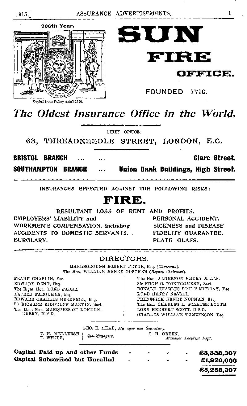 Page 1 Advertisement for the Sun Fire Office