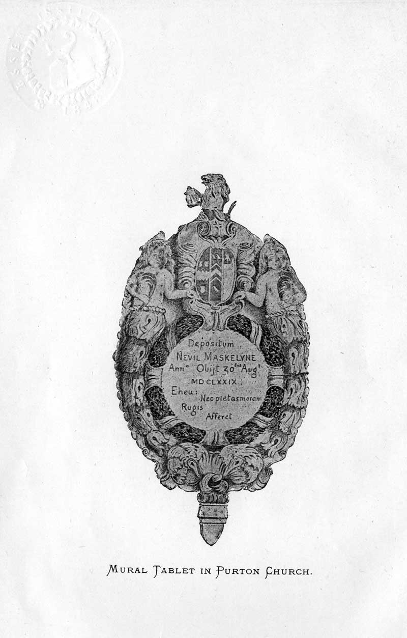 Page 1 Engraving of the Nevil Maskelyne mural tablet in Purton Church.