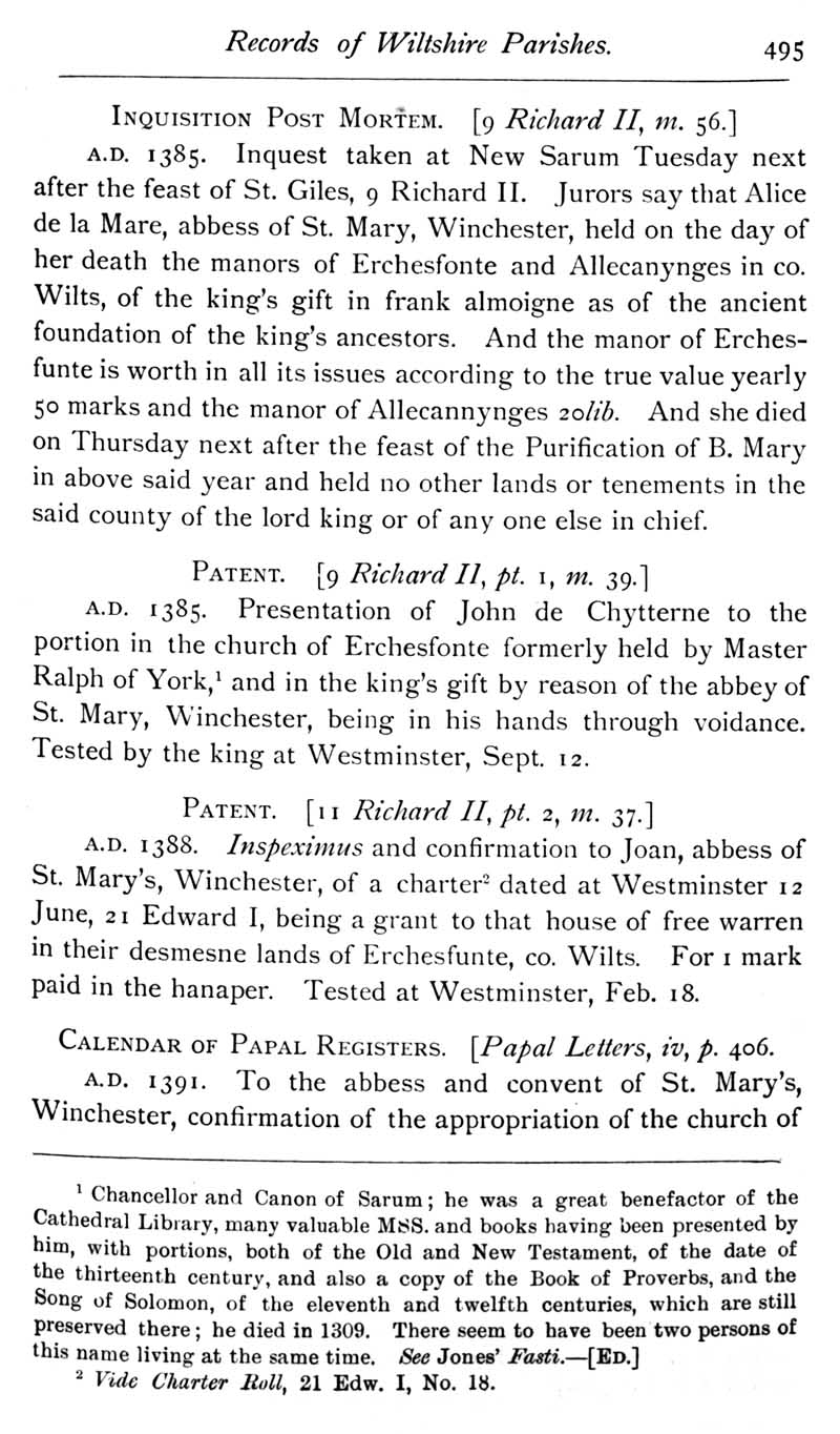 Chapter 12 Montacute, Earl of Salisbury; Records of Wiltshire Parishes; Quakerism in Wiltshire; Feet of Fines for Wiltshire; Sevenhampton; Eyre of Wilts; Eyre of Bromham; Monumental Inscriptions in Corsham Church; Blake; Miscellanea; The Polecat in Wiltshire; Queri