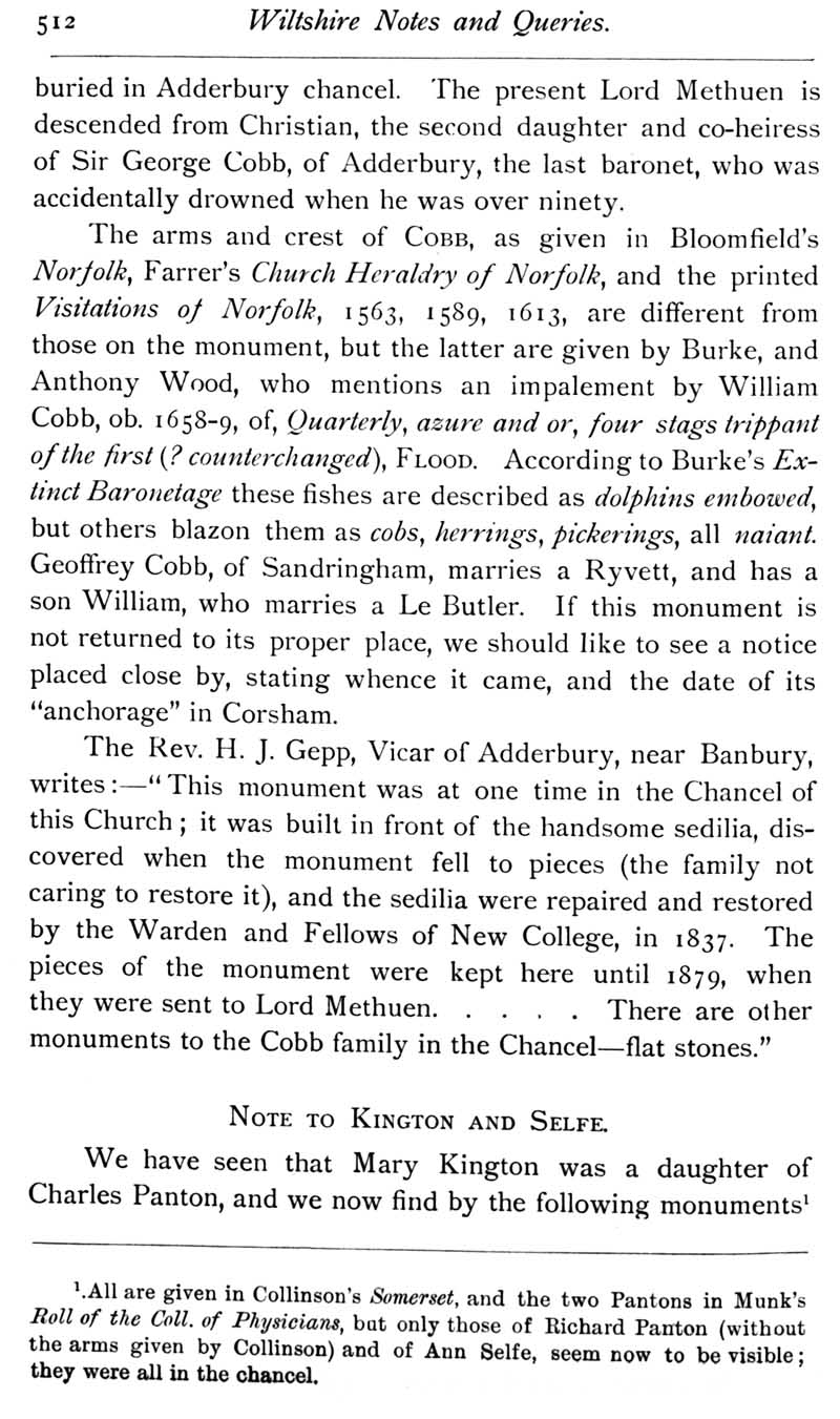 Chapter 12 Montacute, Earl of Salisbury; Records of Wiltshire Parishes; Quakerism in Wiltshire; Feet of Fines for Wiltshire; Sevenhampton; Eyre of Wilts; Eyre of Bromham; Monumental Inscriptions in Corsham Church; Blake; Miscellanea; The Polecat in Wiltshire; Queri