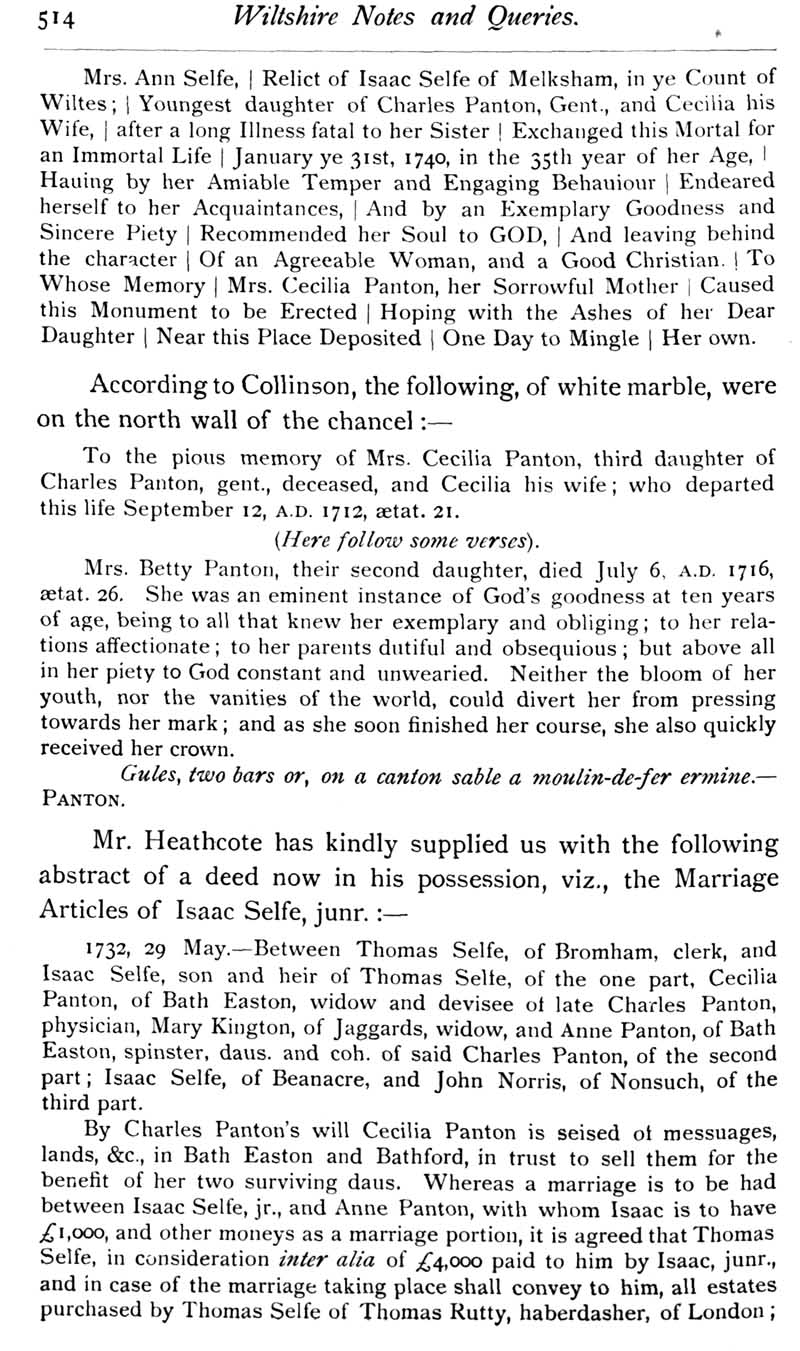 Chapter 12 Montacute, Earl of Salisbury; Records of Wiltshire Parishes; Quakerism in Wiltshire; Feet of Fines for Wiltshire; Sevenhampton; Eyre of Wilts; Eyre of Bromham; Monumental Inscriptions in Corsham Church; Blake; Miscellanea; The Polecat in Wiltshire; Queri
