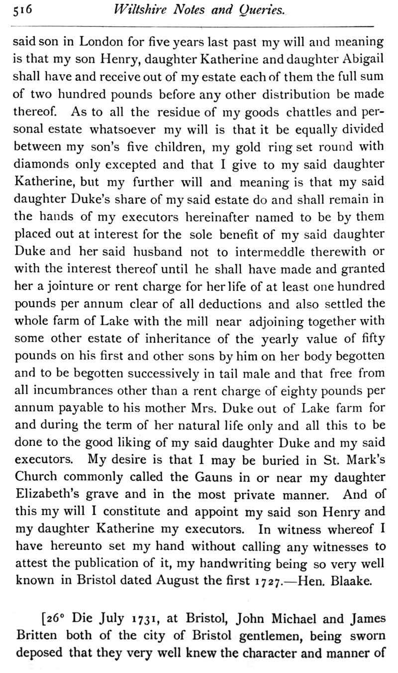 Chapter 12 Montacute, Earl of Salisbury; Records of Wiltshire Parishes; Quakerism in Wiltshire; Feet of Fines for Wiltshire; Sevenhampton; Eyre of Wilts; Eyre of Bromham; Monumental Inscriptions in Corsham Church; Blake; Miscellanea; The Polecat in Wiltshire; Queri