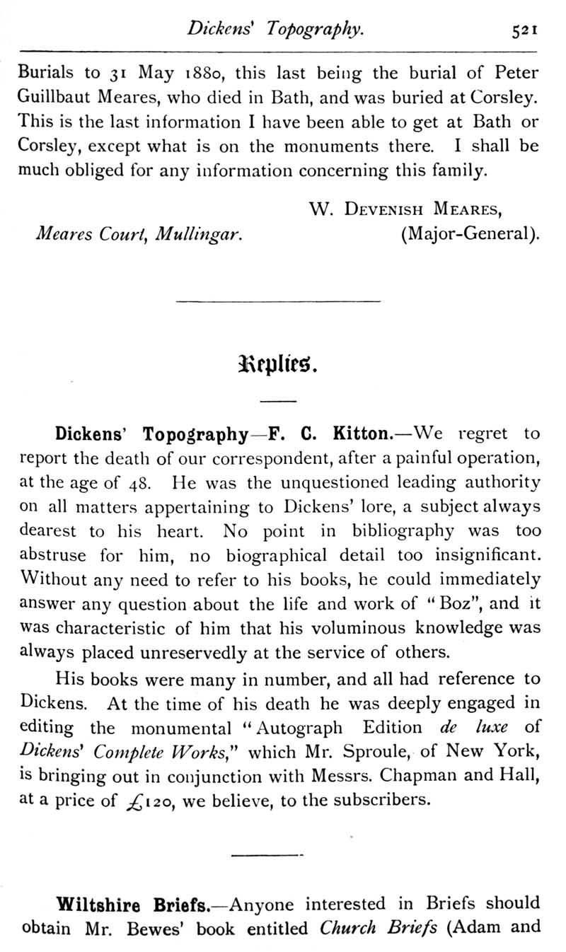 Chapter 12 Montacute, Earl of Salisbury; Records of Wiltshire Parishes; Quakerism in Wiltshire; Feet of Fines for Wiltshire; Sevenhampton; Eyre of Wilts; Eyre of Bromham; Monumental Inscriptions in Corsham Church; Blake; Miscellanea; The Polecat in Wiltshire; Queri