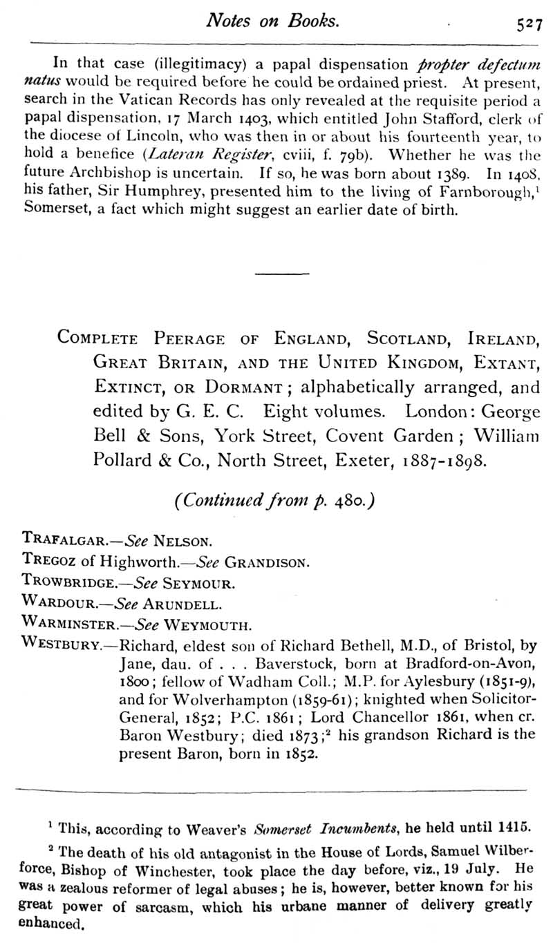 Chapter 12 Montacute, Earl of Salisbury; Records of Wiltshire Parishes; Quakerism in Wiltshire; Feet of Fines for Wiltshire; Sevenhampton; Eyre of Wilts; Eyre of Bromham; Monumental Inscriptions in Corsham Church; Blake; Miscellanea; The Polecat in Wiltshire; Queri