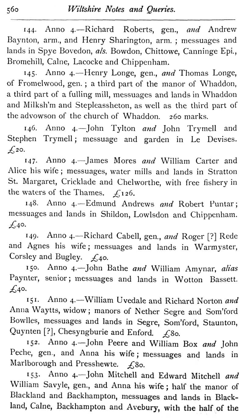 Page 34 Feet of Fines for Wiltshire