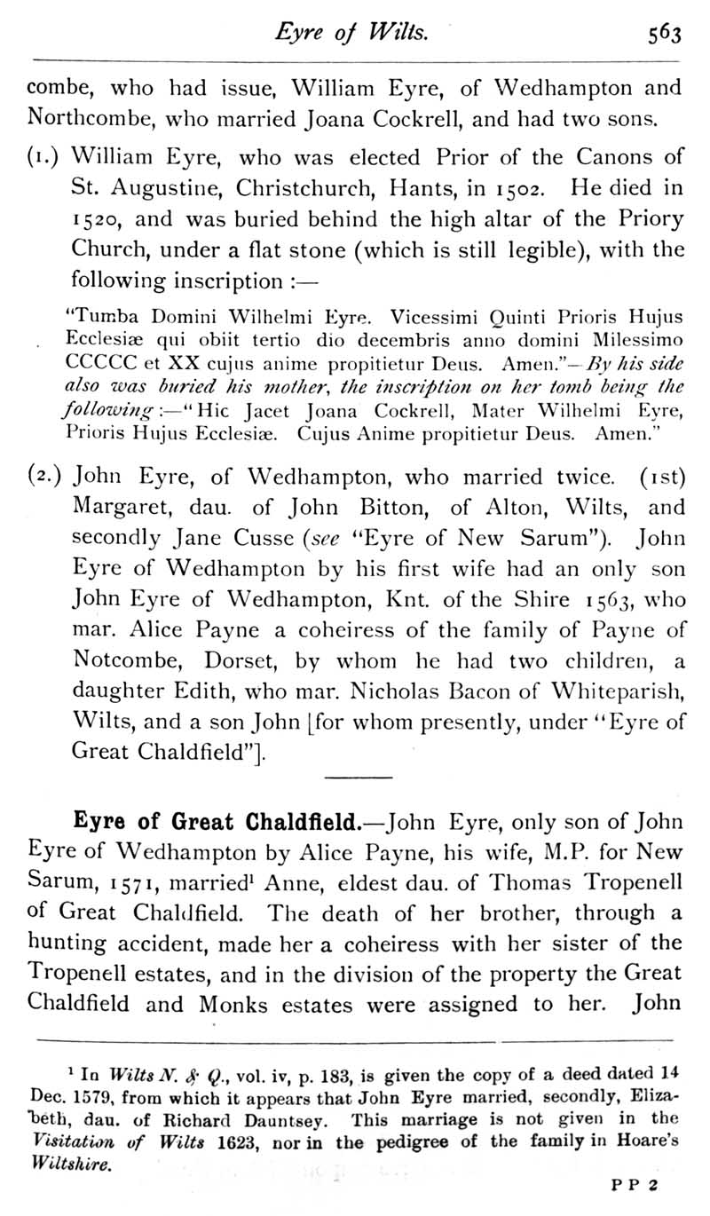 Chapter 13 Montacute, Earl of Salisbury; Records of Wiltshire Parishes; Quakerism in Wiltshire; Feet of Fines for Wiltshire; Eyre of Wiltshire; Will of Andrew Holes; Sarum; Panton and Selfe; Queries; Replies; Notes on Books; Index; Index of Persons; Index of Places