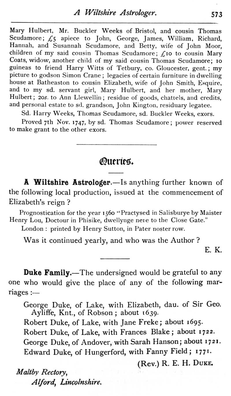 Chapter 13 Montacute, Earl of Salisbury; Records of Wiltshire Parishes; Quakerism in Wiltshire; Feet of Fines for Wiltshire; Eyre of Wiltshire; Will of Andrew Holes; Sarum; Panton and Selfe; Queries; Replies; Notes on Books; Index; Index of Persons; Index of Places