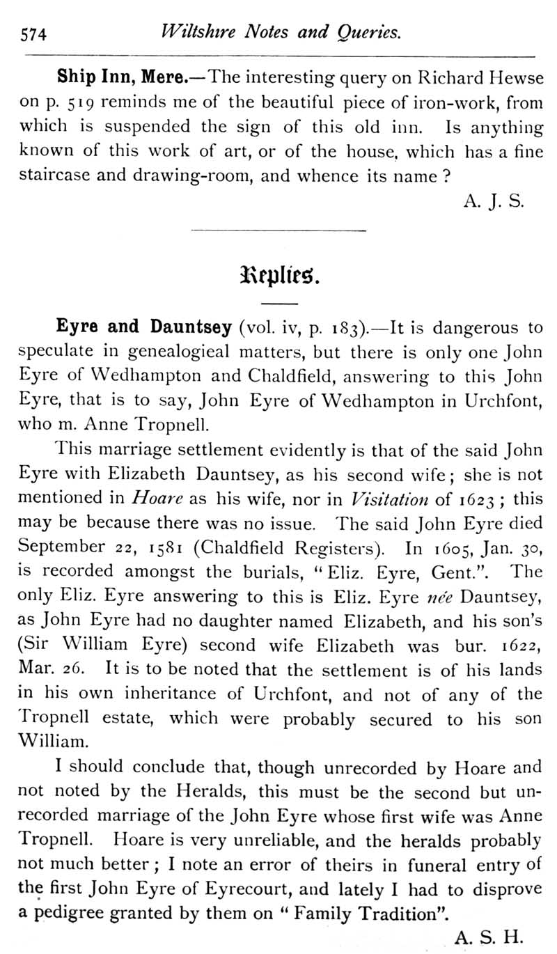 Chapter 13 Montacute, Earl of Salisbury; Records of Wiltshire Parishes; Quakerism in Wiltshire; Feet of Fines for Wiltshire; Eyre of Wiltshire; Will of Andrew Holes; Sarum; Panton and Selfe; Queries; Replies; Notes on Books; Index; Index of Persons; Index of Places