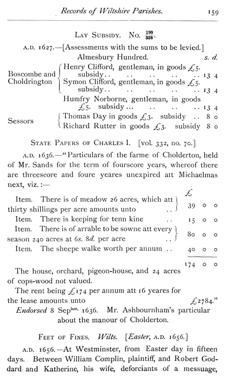 Page 12 Cholderton; transcriptions of records, 1627, 1636, 1656.