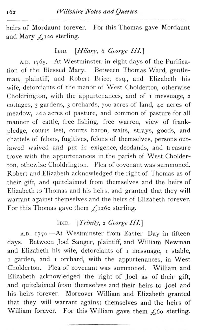 Page 15 Cholderton; transcriptions of records, 1754, 1765, 1770.