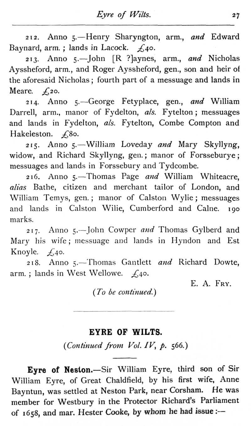 Page 27 Feet of Fines for Wiltshire, Eyre of Wilts