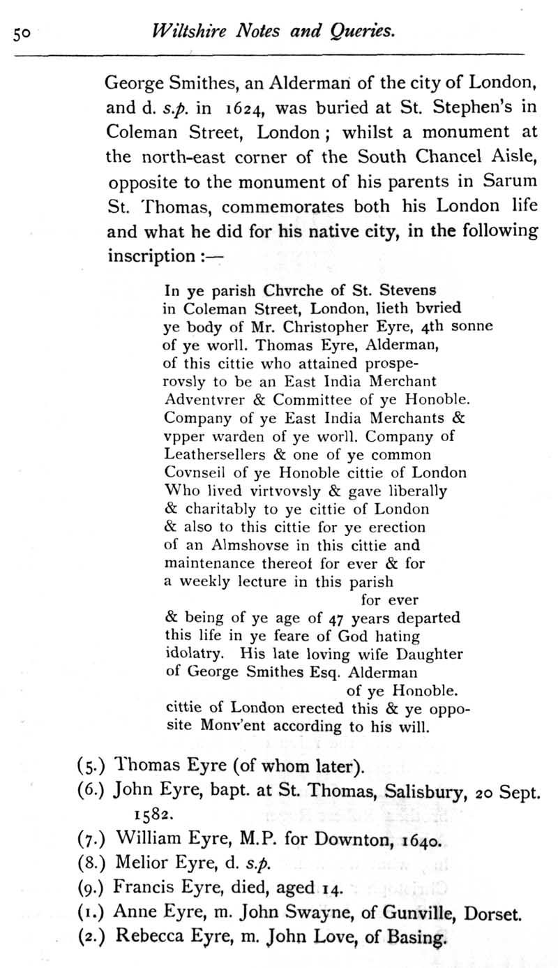 Chapter 3 Eyre of Wiltshire; A List of Wiltshire Portraits; Records of Wiltshire Parishes: Urchfont with Stert; Three Wiltshire Astrologers; Some Wiltshire Deeds; Quakerism in Wiltshire; Wiltshire Wills; Wiltshire Briefs; Chyrebury or Chirburgh of Seend; Edington