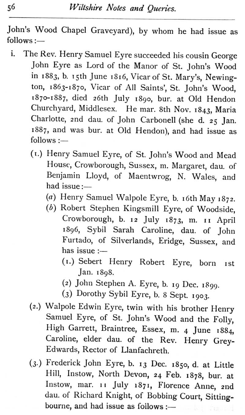 Chapter 3 Eyre of Wiltshire; A List of Wiltshire Portraits; Records of Wiltshire Parishes: Urchfont with Stert; Three Wiltshire Astrologers; Some Wiltshire Deeds; Quakerism in Wiltshire; Wiltshire Wills; Wiltshire Briefs; Chyrebury or Chirburgh of Seend; Edington