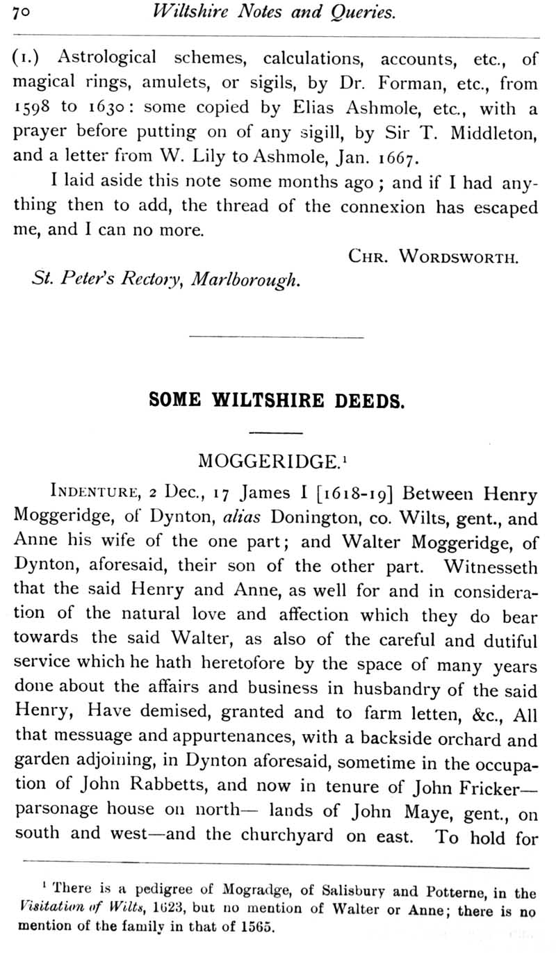 Page 24 Three Wiltshire Astrologers,Some Wiltshire Deeds