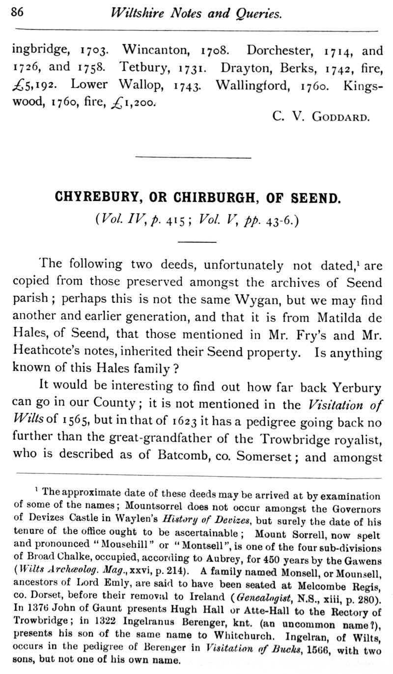 Page 40 Wiltshire Briefs,Chyrbury or Chirburch of Seend